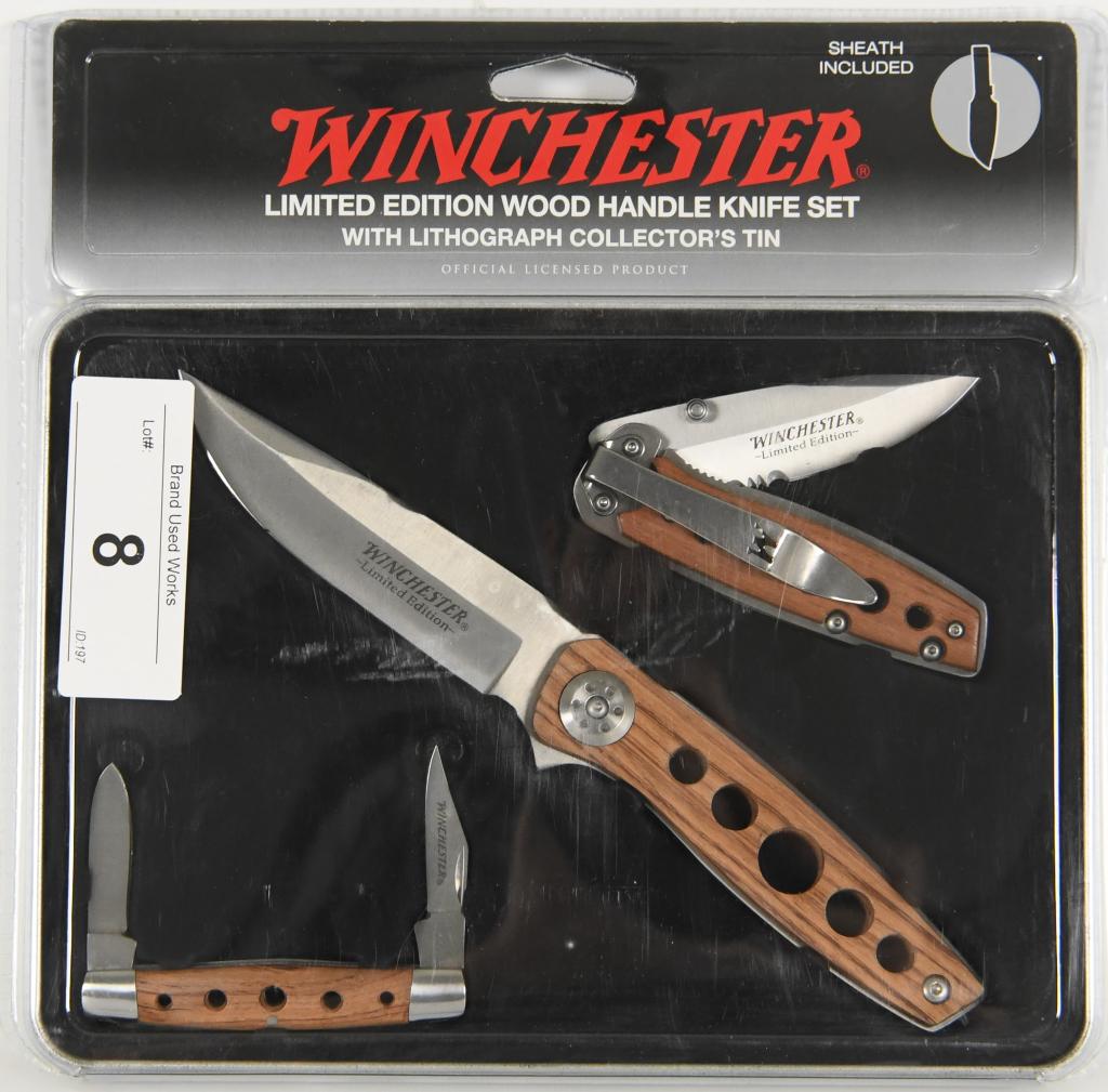 They are able to stay sharp during slicing, dicing or mincing of any food. 2007 winchester knife set in a box limited edition 2007. $19.99 2005 limited edition winchester pocket knife 3 pc set yellow dad son dog on tin buy: The set comes with three knives as shown in the pictures all 3 knives are used but still in very good condition. Two piece wooden display box.